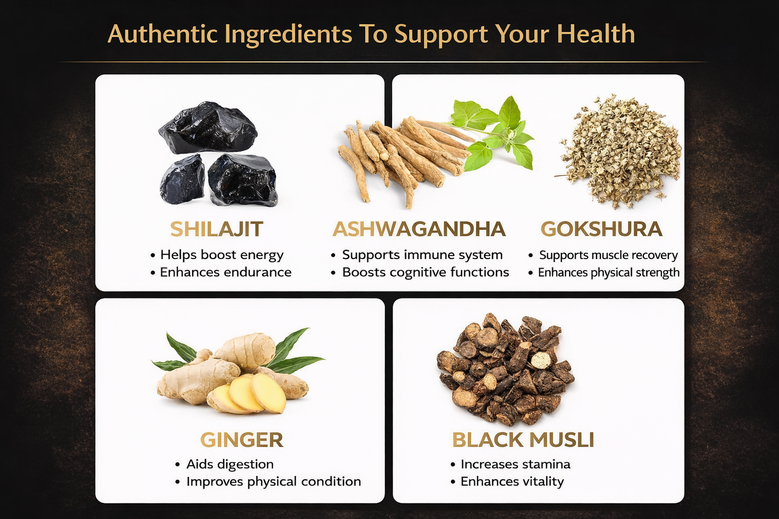 Premium Himalayan Shilajit, Maca, Ginseng & natural ingredients.